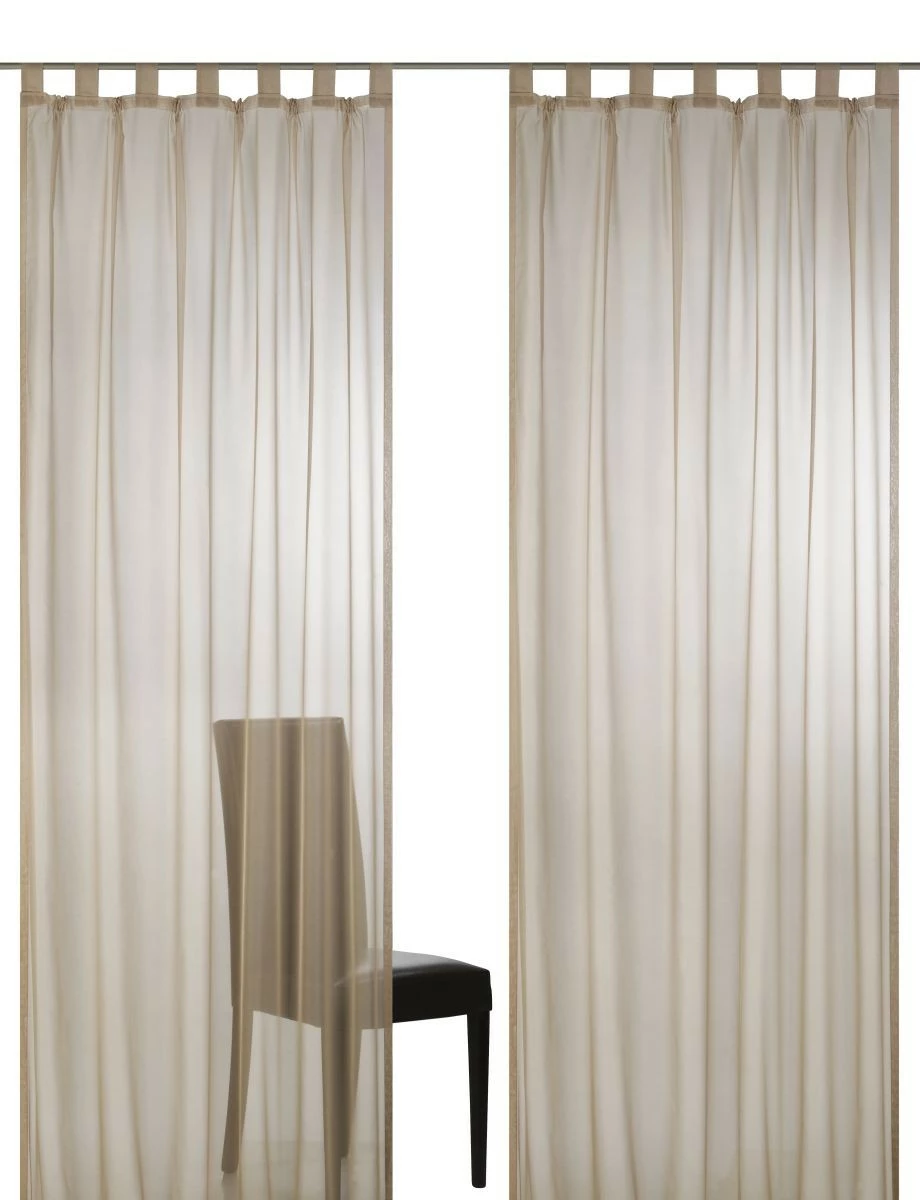 Die transparente Gardine PLANA von Elbersdrucke im vielseitig einsetzbaren Uni-Farbton, verleiht Ihrem Wohnraum eine behagliche Atmosphäre. Der Stoff hat einen schönen Fall durch die weiche, leichte Qualität. Diese edel glänzende Fertig-Gardine aus wunderbar feinem Voile bietet Ihnen tolle Dekorationsvielfalt. Mit dieser Dekoration können Sie einfach und schnell jedes Fenster aufpeppen. Der pflegeleichte Stoff setzt tolle Akzente. Fix und Fertig zum Aufhängen: Gardine mit Schlaufen und Kräuselband. Schlaufen = für die Gardinenstange, Kräuselband = für die Gardinenschiene. Je nach Bedarf können sie die Schlaufen abschneiden und so das Kräuselband benutzen, die Höhe der Gardine verringert sich dabei um ca. 7cm.[Quelle: Elbersdrucke]