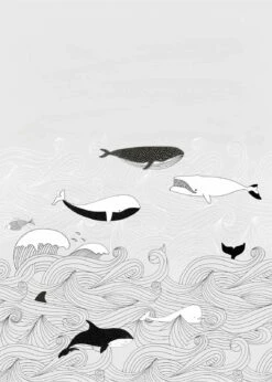 - Stilwelten: Wal-Motiv mit Wellen, hell-grau, schwarz
