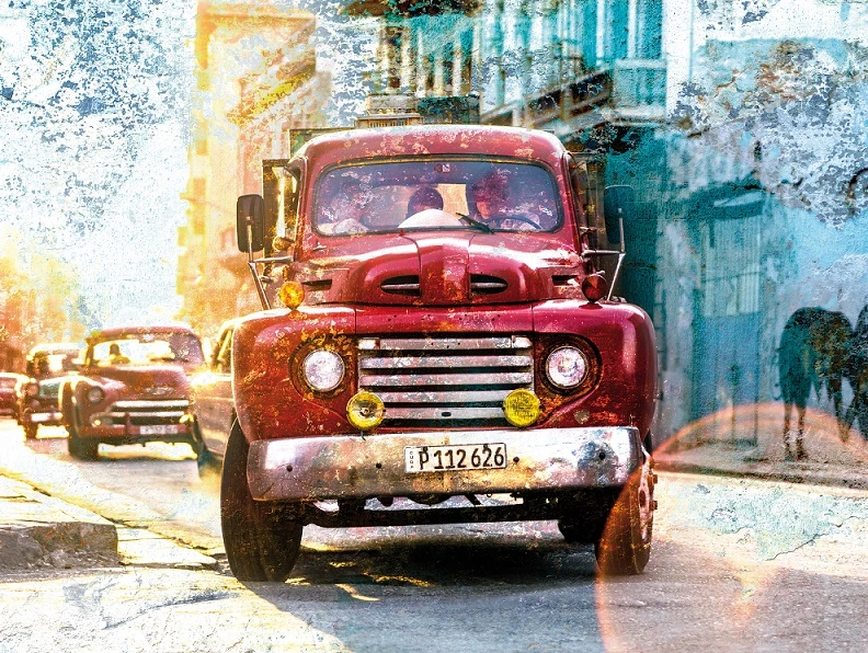 Fototapete Rasch Young Artists Daniel Geier Used Auto Kuba rot blau 101041
