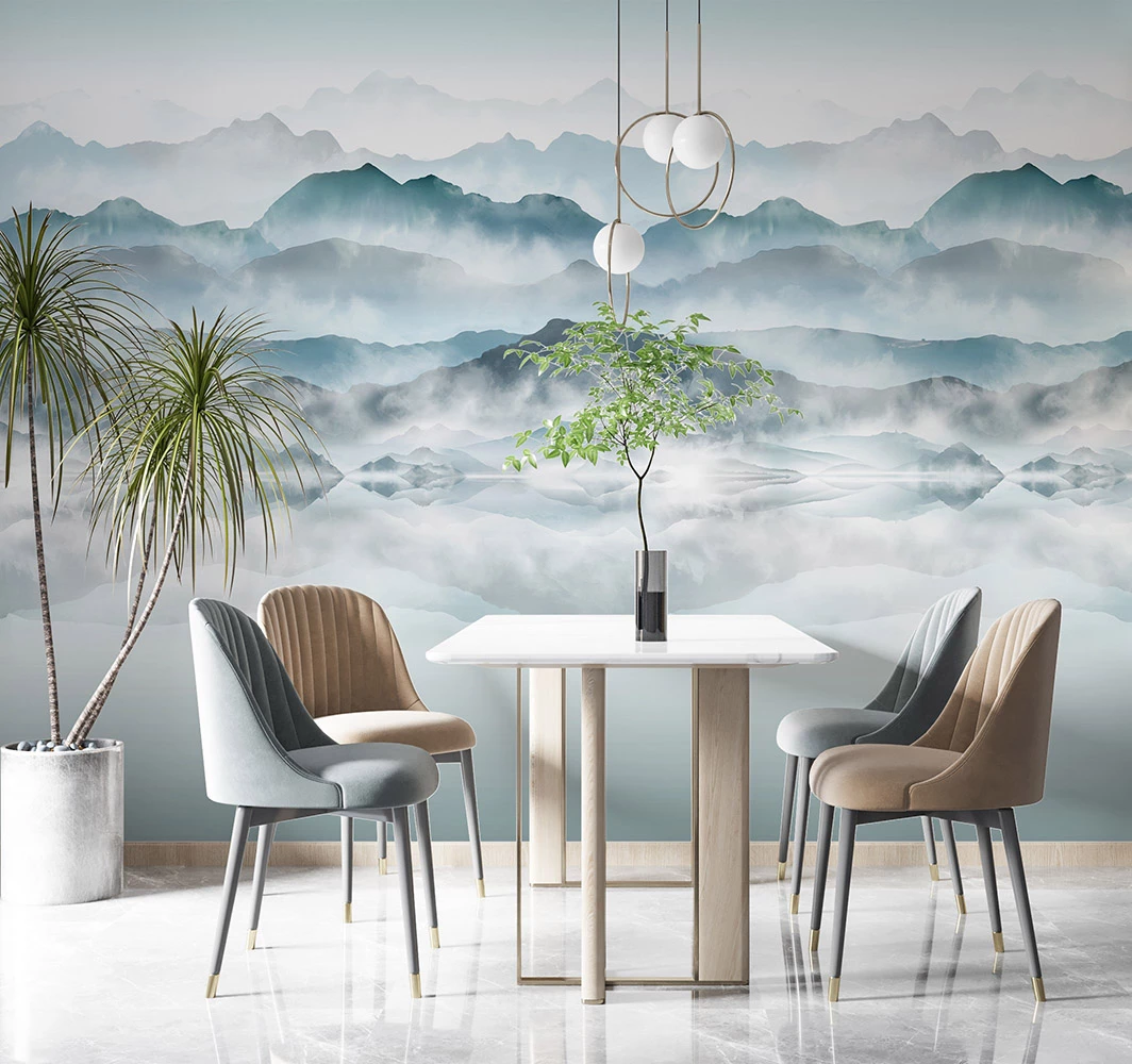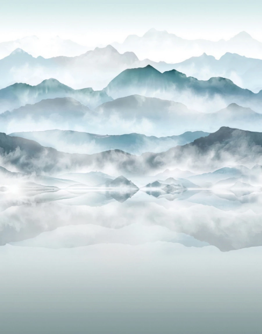Fototapete Vlies Landschaft Berge Nebel blau weiß Smart Art Easy Marburg 47224