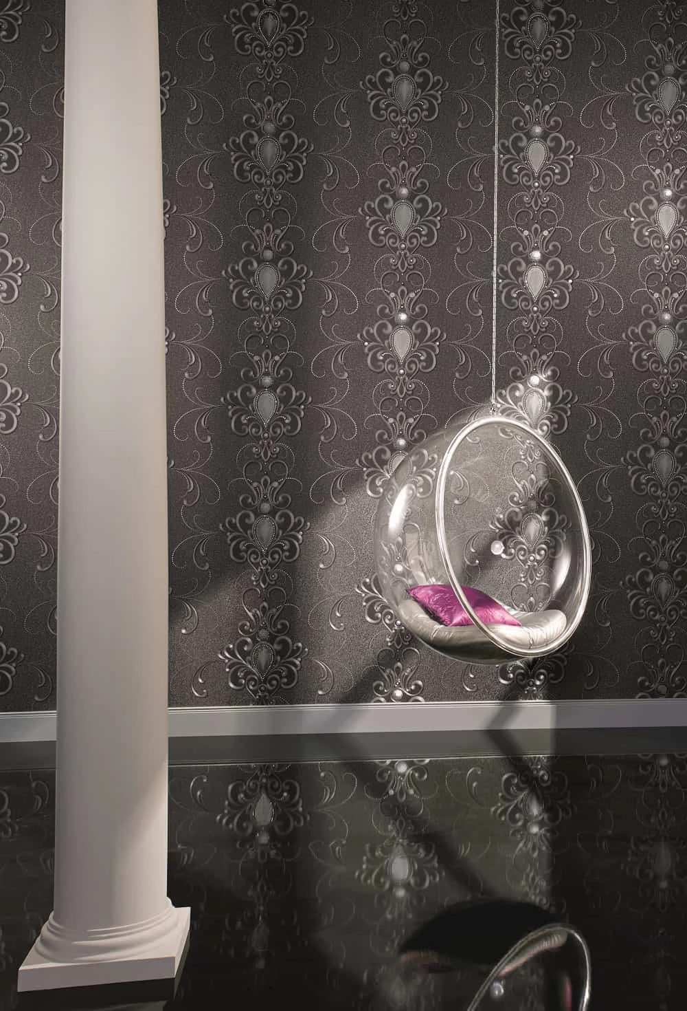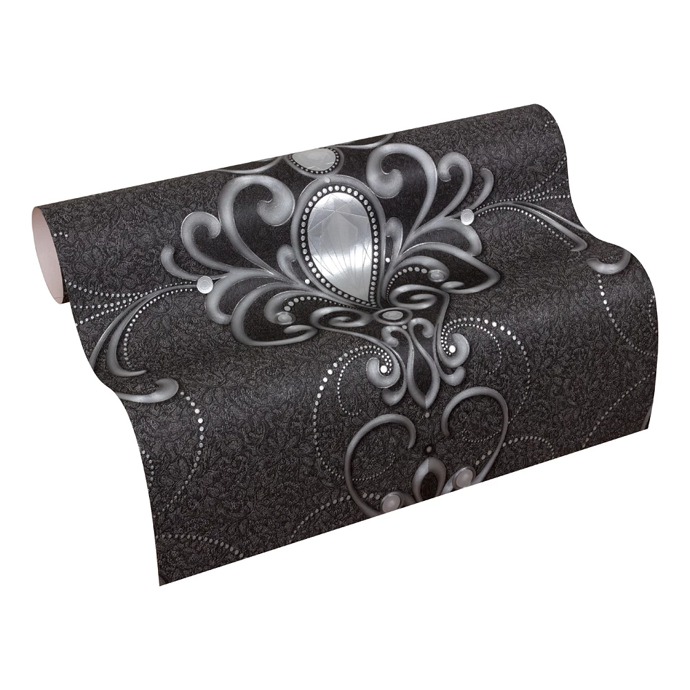 Glööckler Tapete Vlies Ornament Diamant anthrazit Glanz 54853