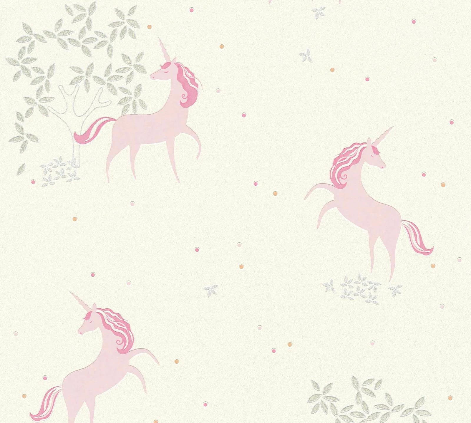 Kindertapete Einhorn Floral weiß rosa silber Glitzer & Glanz Boys & Girls 6 A.S. Création 36989-1 | 369891