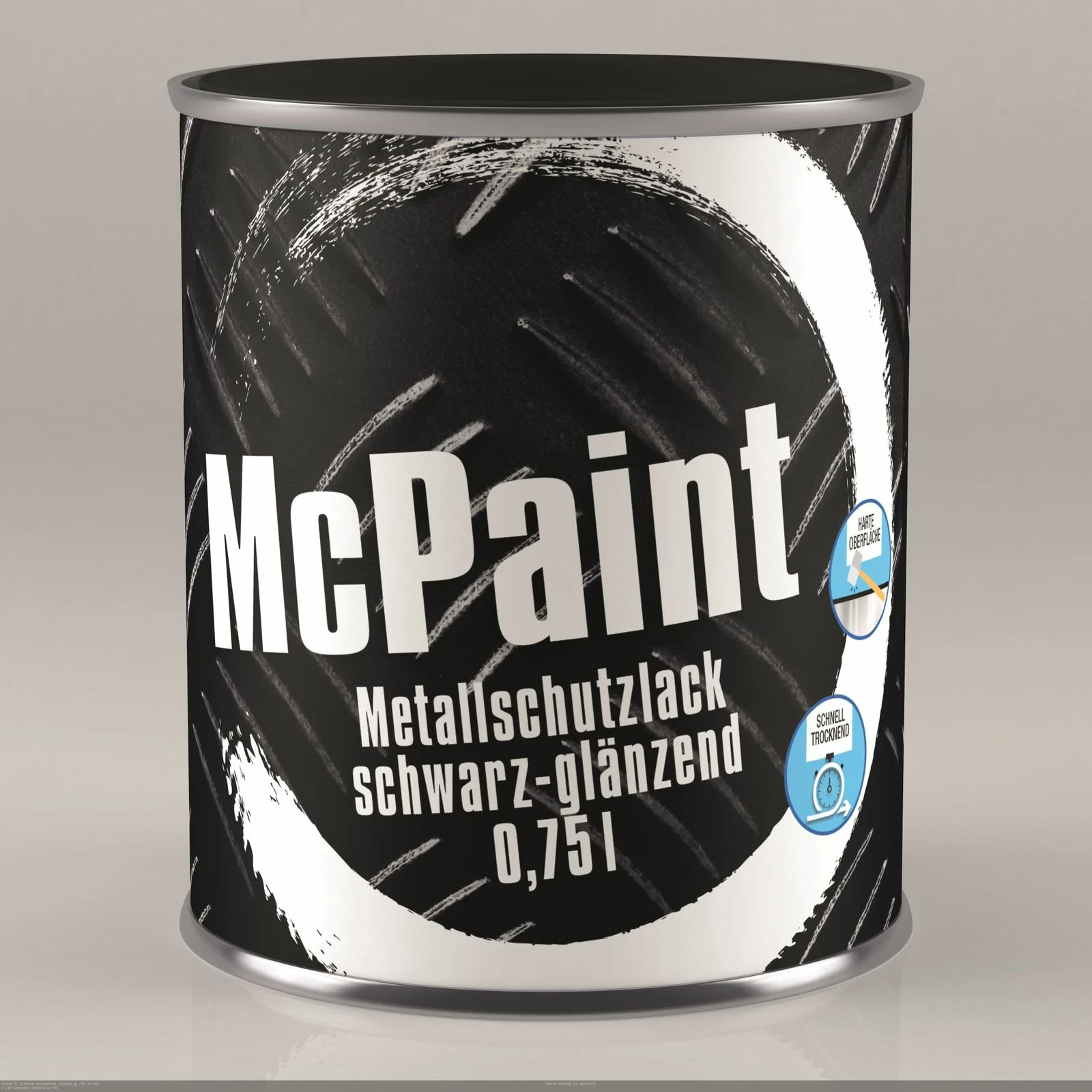 McPaint Metallschutz-Lack schützt Türen, Tore, Treppengeländer und Zäune aus Metall (Eisen, Stahl, Zink). Wähle zwischen den Farben dunkelgrau, schwarz und weiß, sowie den Glanzgraden matt und glänzend. Dank der sehr hohen Rostschutzwirkung dieses Speziallacks, ist die Lackfarbe für den Einsatz im Innen- und Außenbereich für Neu- und Renovierungsanstriche bestens geeignet.