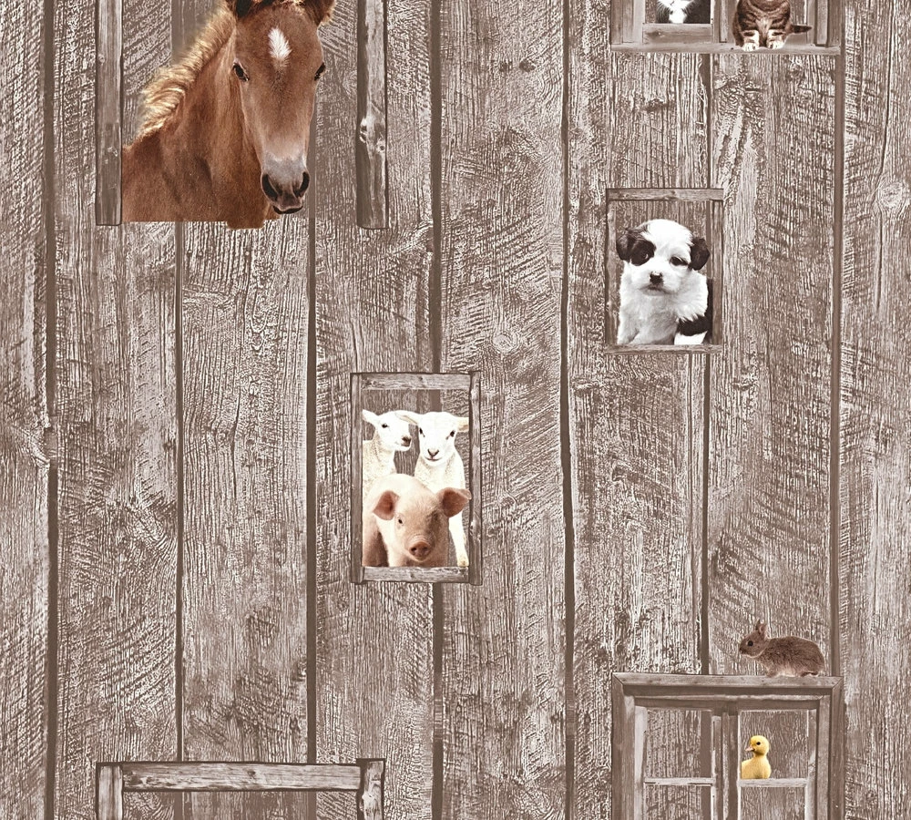 Kindertapete Pferd Hund Schaf braun beige 35842-2