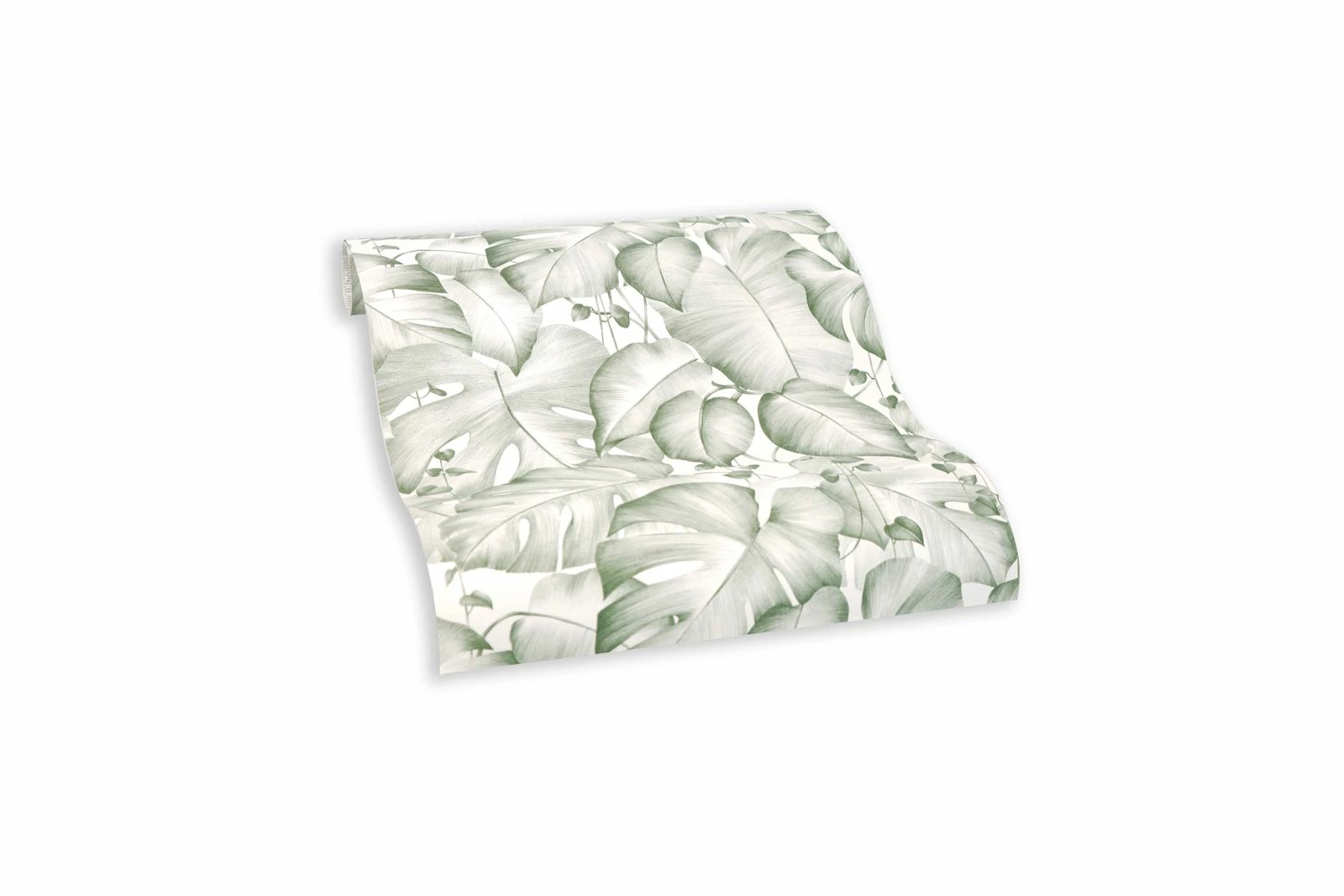 Tapete Selbstklebend Panel Dschungel Blätter weiß grün Pop Up Panel 3D Livingwalls 368391