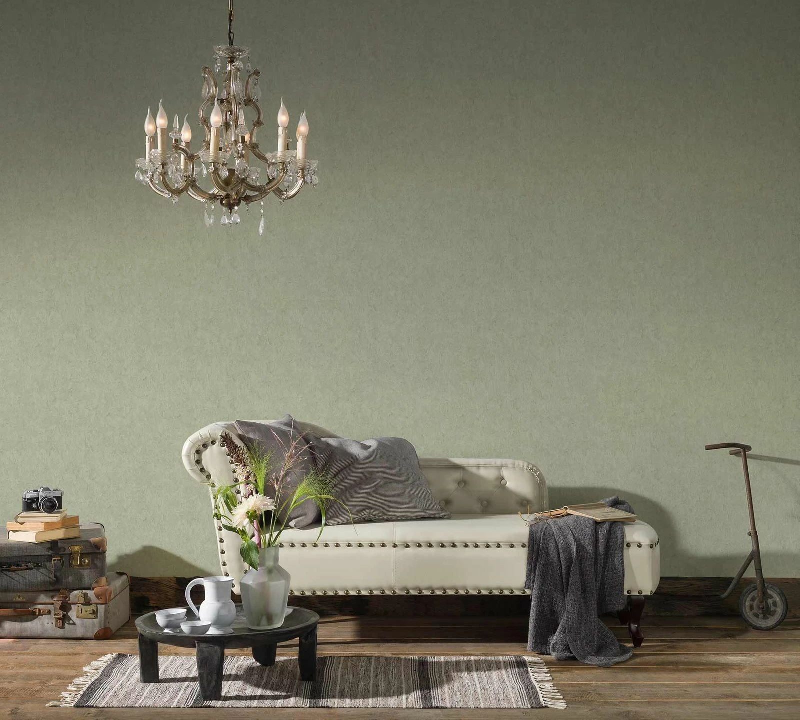Die verspielten, romantischen Vlietapeten der Kollektion Romatico laden zum Träumen ein. Die Tapete Uni meliert in grün, Glanz versprüht eine sinnliche Wohnathmosphäre und strahlt Gemütlichkeit aus. Zudem entschleunigt sie den Alltag und kann mit sehr guten Materialeigenschaften beeindrucken.