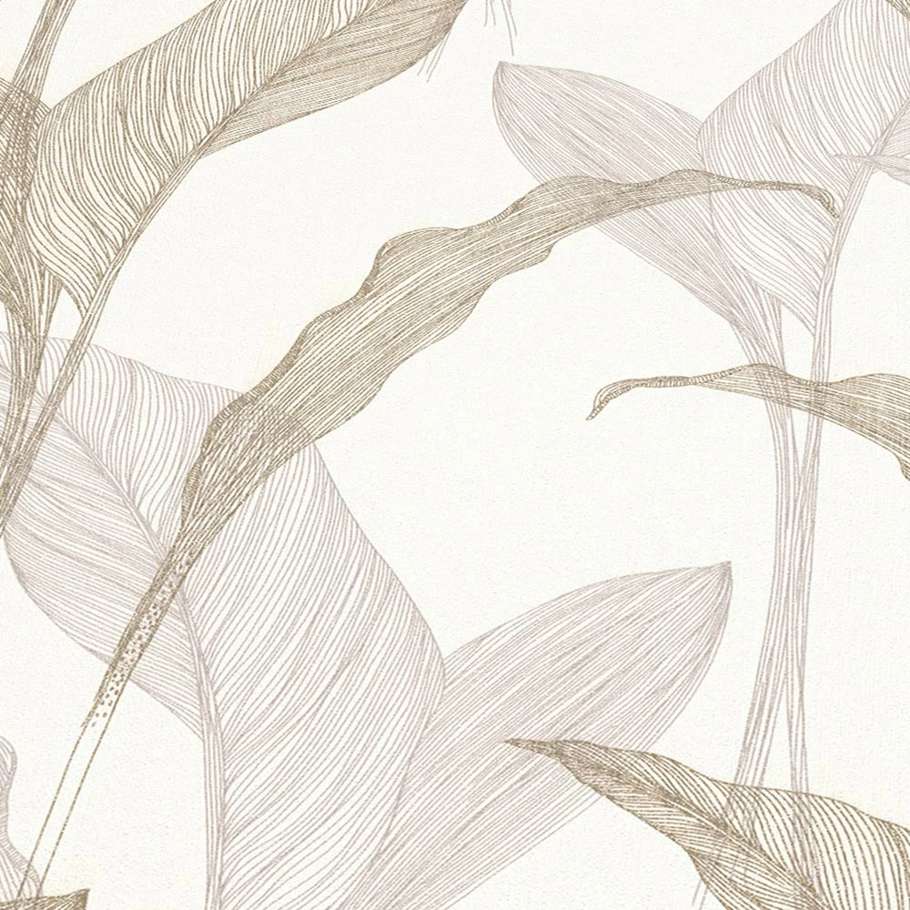 Tapete Vlies ELLE Decoration Blätter Floral gold weiß beige Glitzer 10207-02 | 1020702
