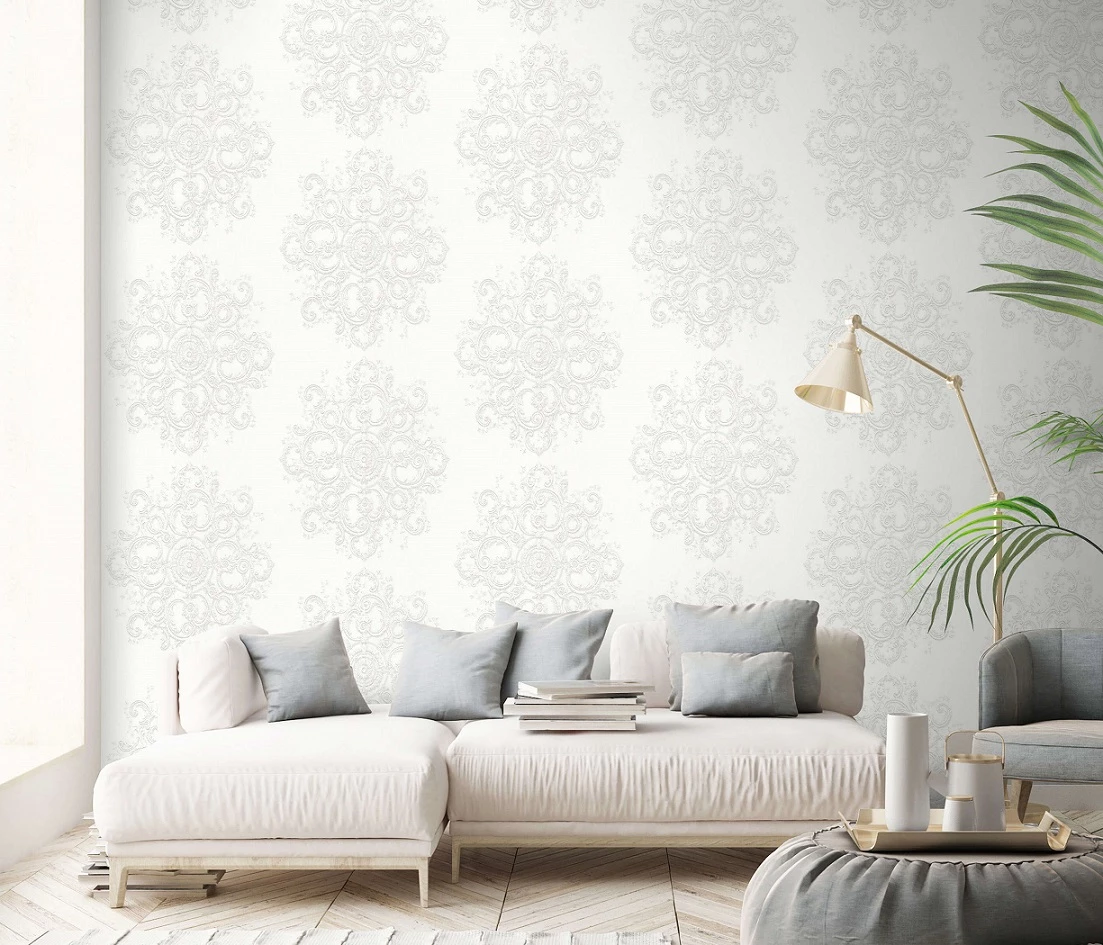 Edel und doch verspielt kommen die Muster aus der Vliestapeten-Kollektion „Elle Decoration“ von Erismann daher. Die barocken Ornamente in weiß, silber und Glitzer der Tapete 10154-31 werten im Nu jeden Wohnraum auf und sorgen für atemberaubende Hingucker.