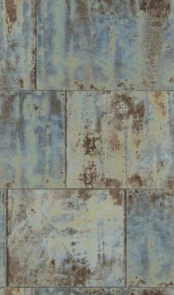 Tapete Vlies Metall Patina Rost Used blau Rasch 939712