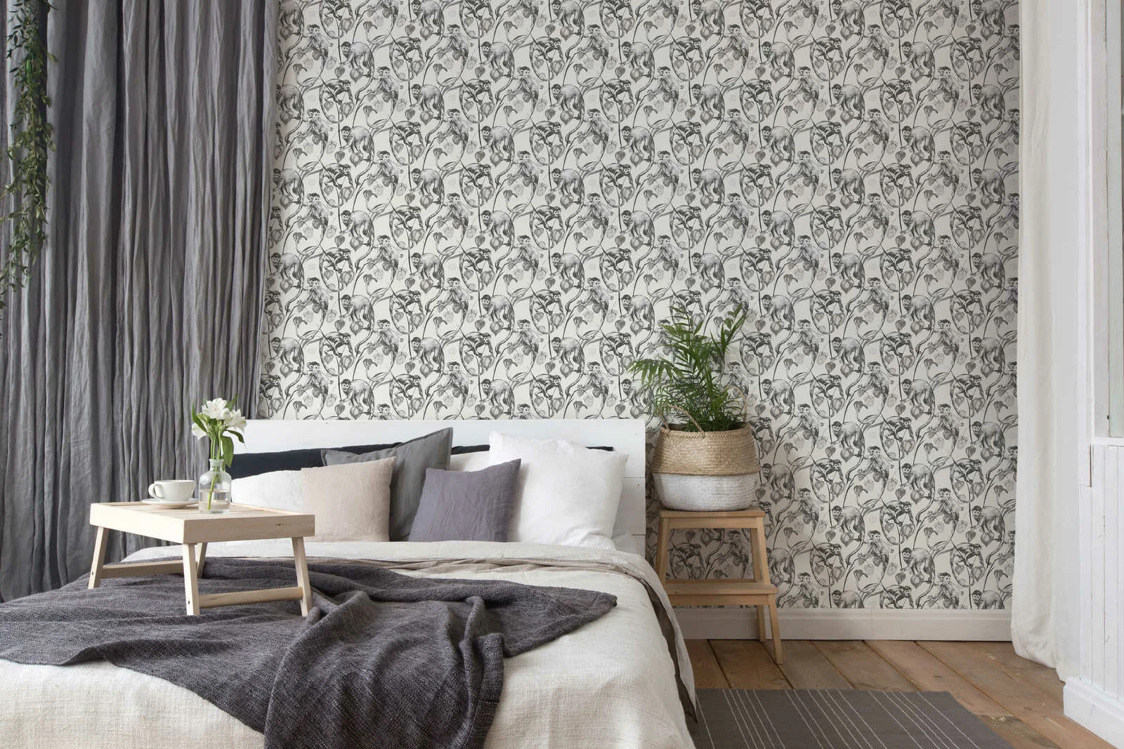 Vliestapete Michalsky Living Dschungel Affen weiß grau 37982-1 | 379821
