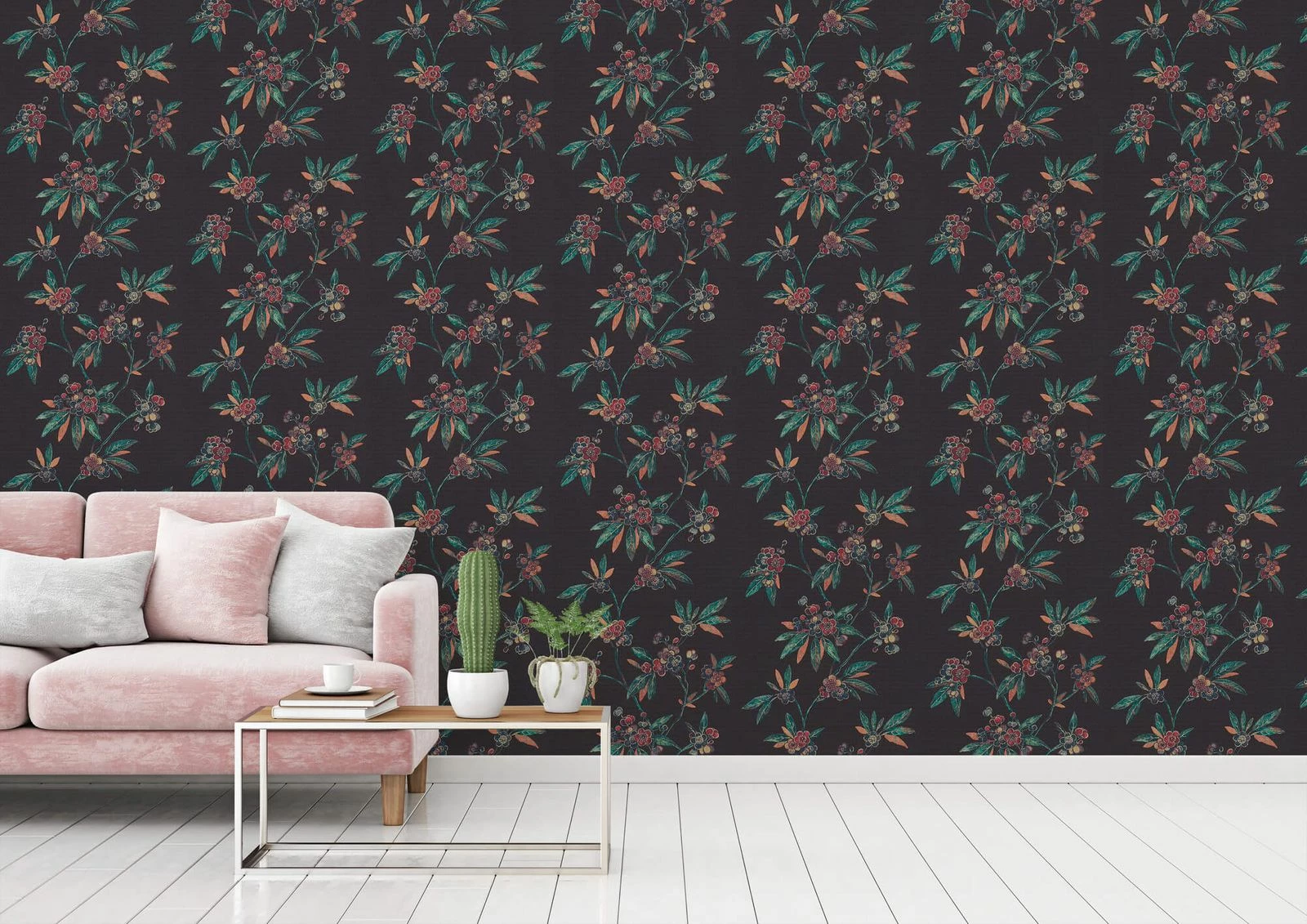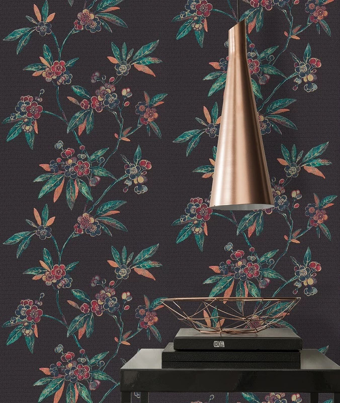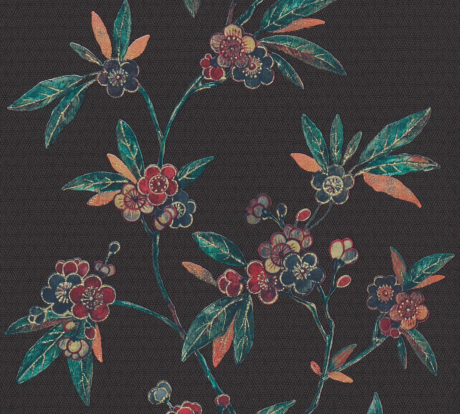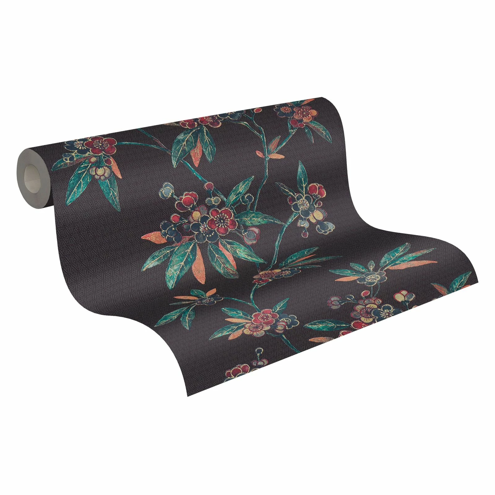 Tapete Vlies Ranken Floral schwarz rot grün Metallic A.S. Création Asian Fusion 37472-1 | 374721