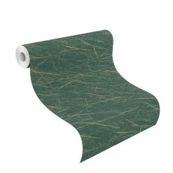 Mit der Vliestapete 428940 von Rasch verleihen Sie Ihrem Zuhause einen natürlichen Touch, der den urbanen Charme eines industriellen Lofts versprüht. Das Marmor-Design in dunkelgrün, gold und Metallic-Effekt vereint die vermeintlich gegensätzlichen Komponenten auf eine stilvolle Art und Weise miteinander. Dadurch entsteht ein einzigartiges Wohnambiente, das zeitlos und modern zugleich ist.