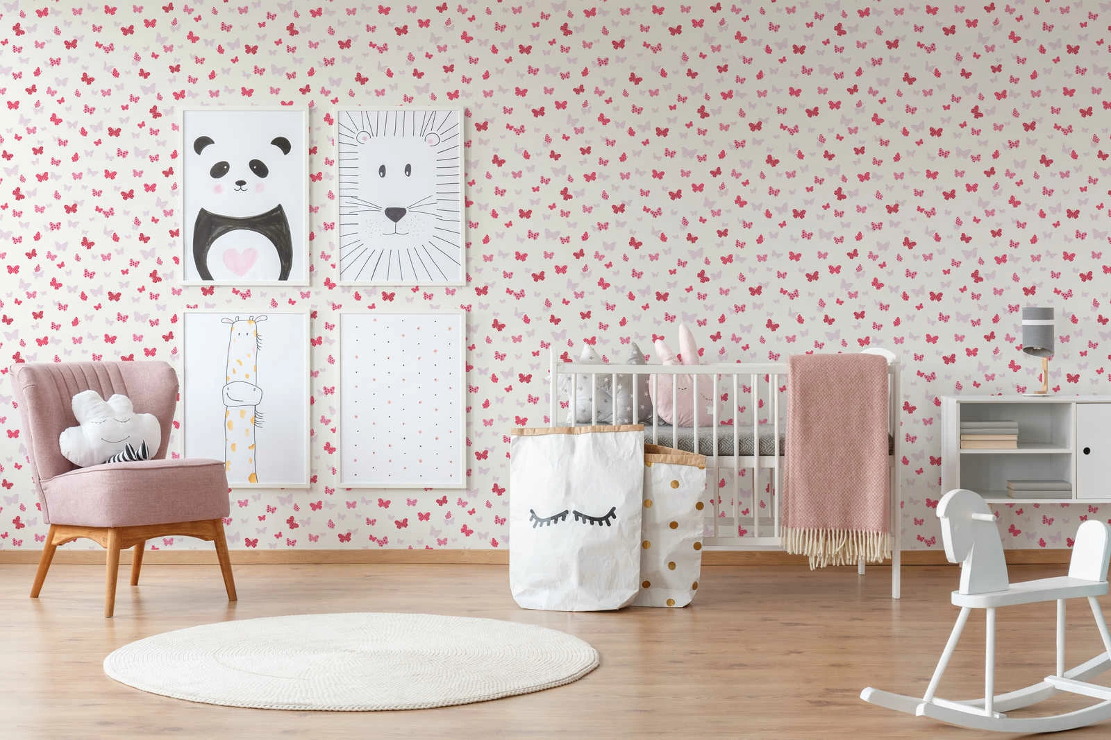 Tapete Vlies Schmetterlinge weiß rot rosa Glanz AS Creation Attractive 36933-1 | 369331