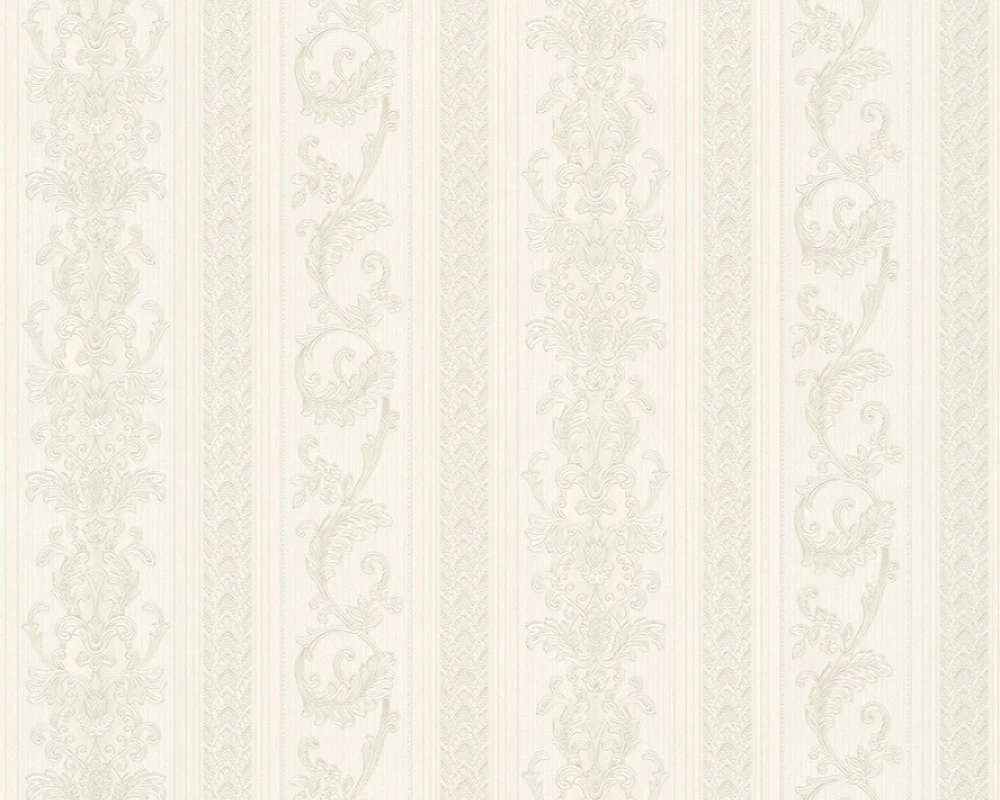 Tapete Vlies Ranken Streifen weiß silber Glanz Hermitage 33547-1