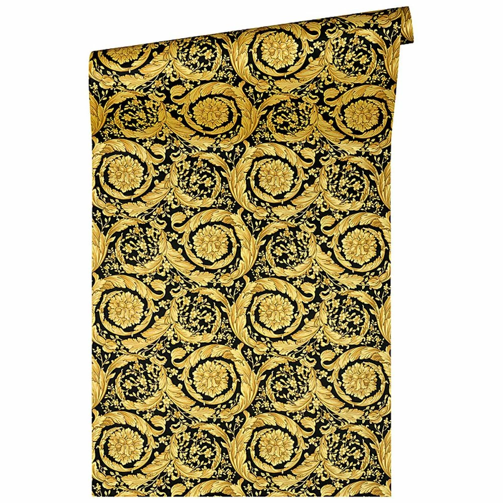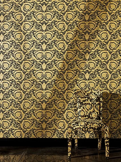 Die Einrichtungsmarke Versace Home steht für exklusives und hochwertiges Interiordesign. Dabei erfindet sich die Designermarke mit ihren glamourösen Kreationen immer wieder neu und setzt damit unangefochtene Maßstäbe im Einrichtungsbereich. Mit der dritten Auflage der erfolgreichen Versace Home Tapetenkollektion setzt die Luxusmarke erneut ausdrucksstarke Akzente im Wohnbereich. Inspiriert von Prunk und Eleganz sowie der griechischen Mythologie verzaubert Sie die Versace Vliestapete 93583-4, aus der Themenreihe Barocco Flowers, mit einem antiken Ambiente. Dieses Ambiente wird durch das kräftige Kolorit aus schwarz und gold Glanz sowie der aufregenden Prägestruktur stilvoll in Szene gesetzt. Die Kombination aus Farbe und Struktur führt letztendlich dazu, dass das Rankenmuster mit Blumenmotiven zum Hauptaugenmerk Ihrer Wandgestaltung wird.