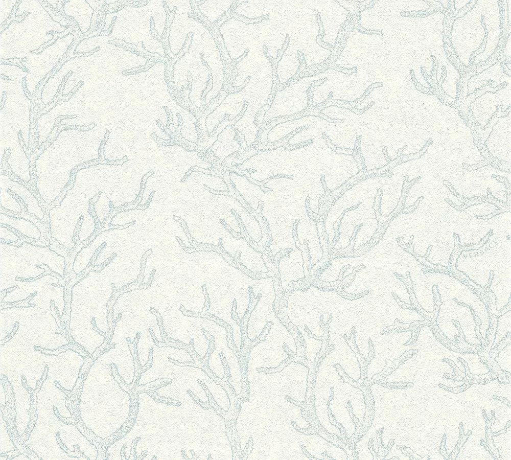 Versace Home Tapete Korallen blau weiß Glanz 34497-2