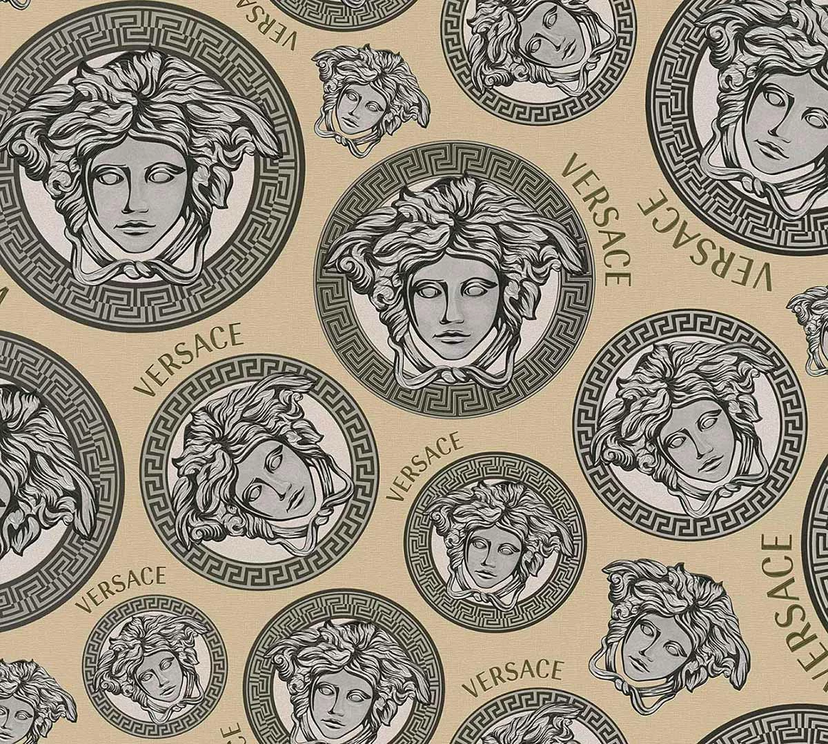 Mit den Vliestapeten der Versace Home 5 Kollektion bringen Sie den einzigartigen Stil der Luxusmarke Versace an Ihre Wände. Die Tapeten zeigen typische Versace Motive wie Medusaköpfe oder Mäandermuster. Aber auch schlichte Uni-Tapeten können Sie hier finden. Die Tapete 38611-4 in Beigetönen mit metallischen Akzenten in Silber und Gold besticht durch ein Medusa-Kopf Motiv. Lassen Sie sich von den Versace Home Tapeten überzeugen und entdecken Sie die komplette Kollektion bei uns im Shop.
