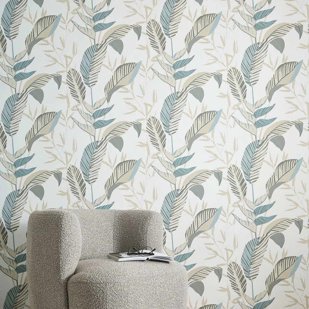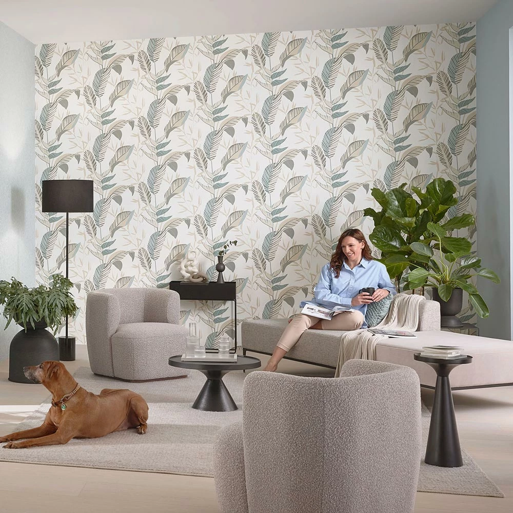 Auch in der dritten Designer-Kollektion von ELLE Decoration finden sich moderne und stilvolle Vliestapeten, die Eleganz in jeden Raum bringen. Alle Tapete dieser Highend Kollektion haben einen außergewöhnlichen Charakter ganz nach dem Motto „Tapeten mit Leidenschaft!“. Die Tapete 10332-07 in weiß, Grün- und Blautönen mit Glanz-Effekt in Beige hat ein Blattmuster mit Blättern in verschiedenen Größen. Entdecke auch die anderen Tapeten von Elle Decoration bei uns im Shop.