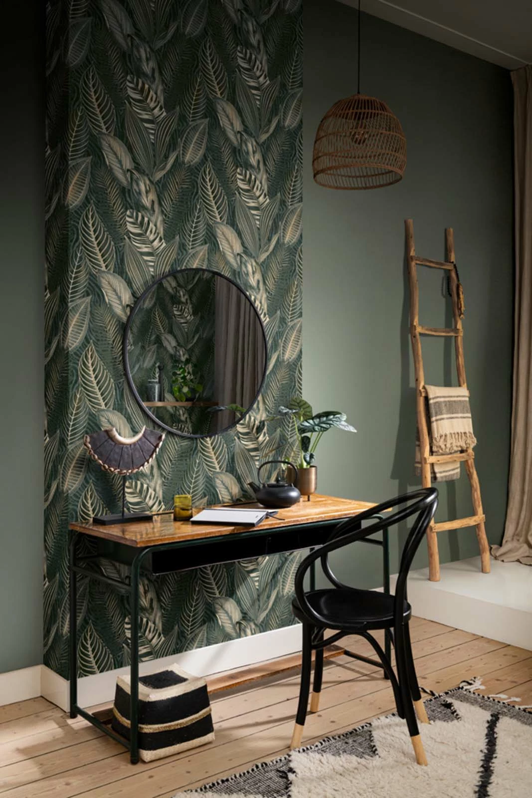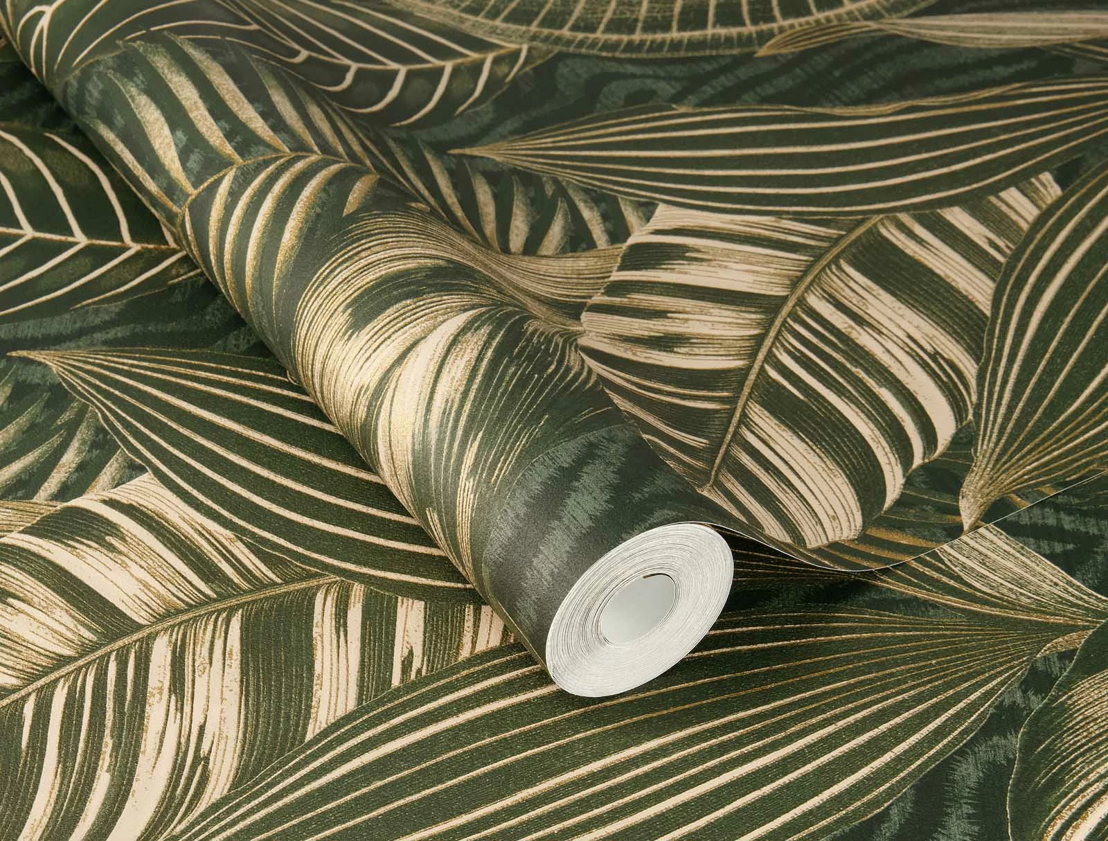 Mit dieser Vliestapete ist es ganz einfach deinem Zuhause exotischen Flair zu verleihen. Dabei ist die Tapete 751826 der Kollektion African Queen 3 von Rasch inspiriert von der schützenswerten Tier- und Pflanzenwelt, sowie dem kunstvollen afrikanischen Handwerk. Sie präsentiert sich mit einem Muster aus verschiedenen tropischen Blättern auf einem Hintergrund in Zebrafell-Optik in Grüntönen mit Metallic-Effekt in Gold. Entdecke jetzt mit der Kollektion African Queen 3 das facettenreiche Afrika bei uns im Shop.