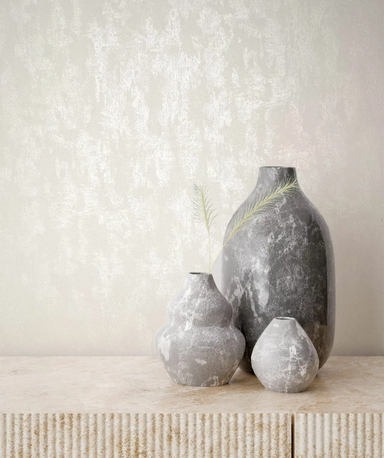 Mit dieser Vliestapete aus der Kollektion Jackie von Novamur holst du dir frischen Wind nach Hause. Inspiriert von den Metropolen Bahia, Riga, Lissabon und New York greifen die Designs der Kollektion unterschiedlichste Trends auf. Die Tapete 82372 hat eine Betonoptik im Used-Look in Grau- und Beigetönen mit Metallic-Effekt in weiß. Entdecke jetzt die gesamte Tapetenkollektion von Novamur bei uns im Shop.